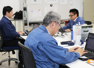 また、お客様からの技術的なお問い合わせや製品不具合に対し、専門知識と技術を駆使し不良箇所を特定、改善方法を検証するなど、営業職と技術職の中間的ポジションで活動範囲は多岐に渡ります。